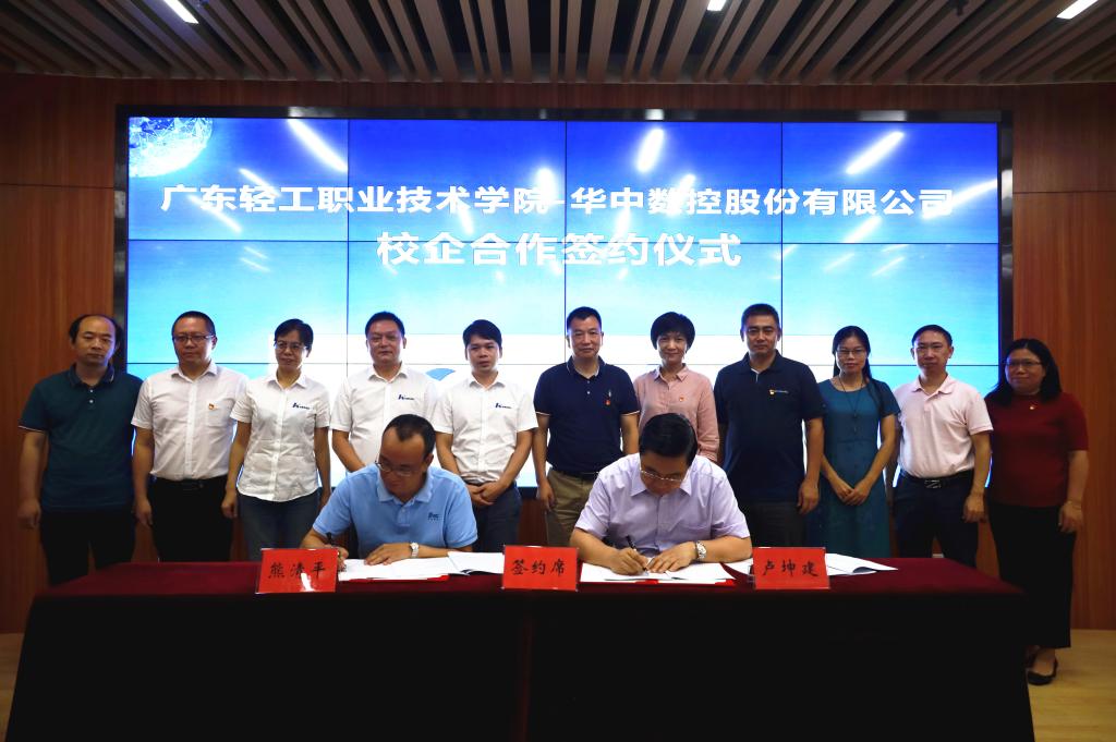 2020年8月28日,我校与武汉华中数控股份有限公司在广州校区工业实训中心举行校企合作协议签约仪式。武汉华中数控股份有限公司副总裁熊清平、深圳华数机器人有限公司(以下简称“华数”)副总经理莫奕举、教育事业部副总陈飞、教育事业部副总刘丽琴及我校校长卢坤建、校企合作办主任李国杰、继续教育学院院长陆英杰、机电技术学院行政负责人张友能、机电技术学院党总支书记宋霞等领导出席签约仪式。仪式由李国杰主持。
