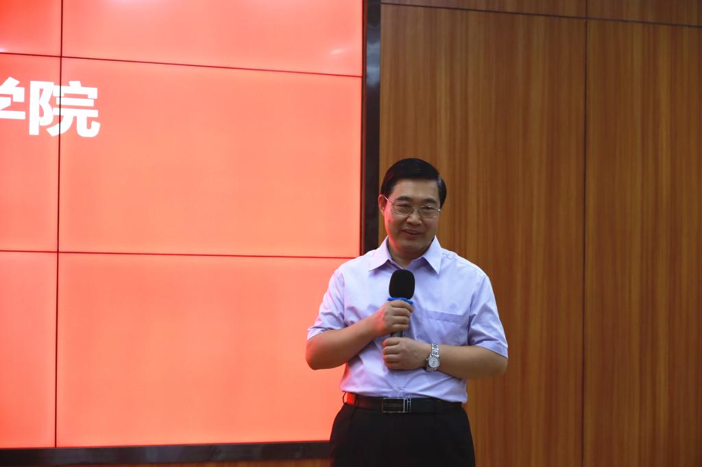 卢坤建在仪式上致辞,他首先代表学校对华数为我校提供的大力支持表示衷心的感谢,他表示,产教融合是职业院校在新时代的任务和使命,此次签约是双方推进产教深度融合的实践探索,对智能制造行业发展研究和培养高质量复合型高技术技能型人才将起到积极的促进作用。学校将继续服务国家战略,深度对接区域和行业发展,在实践、开放的基础上与行业标杆企业开展全方位、多层次、多领域的合作,创新人才培养模式,力促企业行业发展。最后,他期待并相信在双方共同努力下,我们将构建校企命运共同体,培育校企双赢之果,开出校企合作之花。