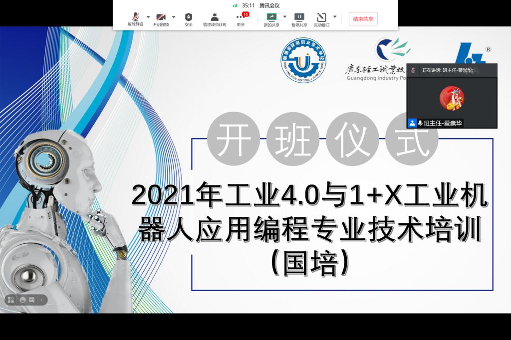 8月16日上午,由我院与顺德梁銶琚职业技术学校、佛山华数机器人有限公司联合举办的“2021年工业4.0与1+X工业机器人应用编程专业技术培训(国培)”正式开班。佛山市顺德区梁銶琚职业技术学校赵汝其副校长、佛山华数机器人有限公司教育事业部张欢部长、机电技术学院张友能院长、苑振国副院长和来自省内15所中职院校共30名工业机器人领域骨干教师参加了此次开班仪式。由于疫情防控需要,本次培训班将采取线上、线下相结合的方式进行,开班仪式通过网络开展。