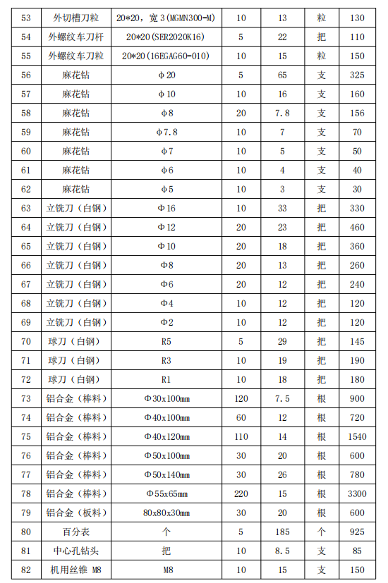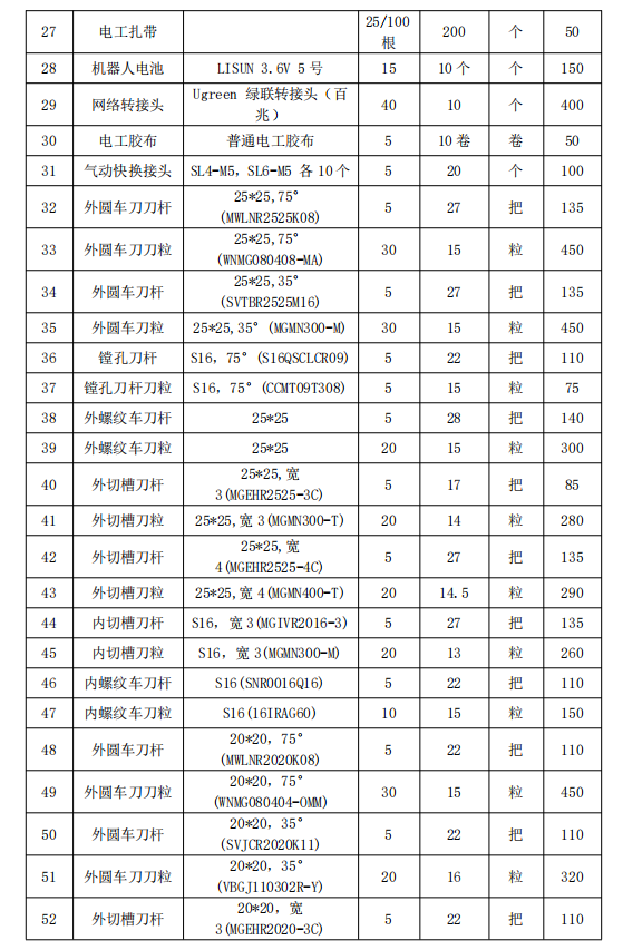 关于采购 2024-2025学年实训耗材的清单及价格公示