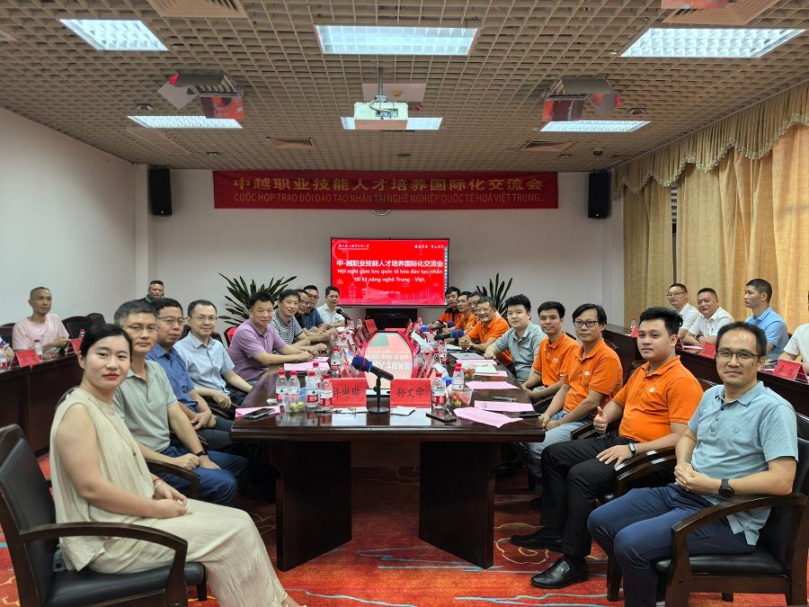 越南FPT理工学院副院长黄文利、国际合作部负责人范俊英等8位领导、广东交通职业技术学院、广东松山职业技术学院、江门职业技术学院、广东机电职业技术学院、广东创新科技职业学院等6所职业院校的领导,以及深圳华中数控有限公司、广西九域科技有限公司等企业的高层领导汇聚一堂,深入探讨职业教育国际化人才培养新路径。