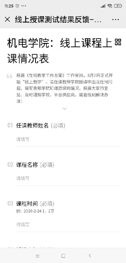 2月24日-28日,安排所有老师测试“云课堂”,收集网络、操作等问题及时反馈处理;3月2日开学后,老师正式上课继续跟进线上授课存在的问题。通过填写《线上课程情况表》,并在后台统计信息,及时反馈给教务处、教学平台的工作人员,并在学院内部展开讨论,帮助所有老师,解决线上课程的准备工作。并在开课前,通过腾讯文档安排所有老师填写《在线课程信息表》,信息包括第一平台的网址、班级邀请码,第二平台的网址二维码,课程微信群,课程QQ群,方便课程的线上检查。