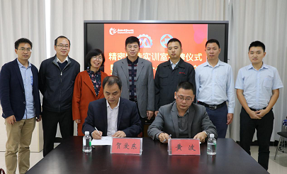 11月22日,北京精雕科技集团(以下简称“北京精雕”)与我机电技术学院合作共建的精密制造实训室在南海校区第四实训楼C103正式揭牌,学校党委副书记李铭辉、机电技术学院主持工作副院长贺爱东、北京精雕东莞分公司经理黄波、陈永涛等人一同为精密制造实训室揭牌。
