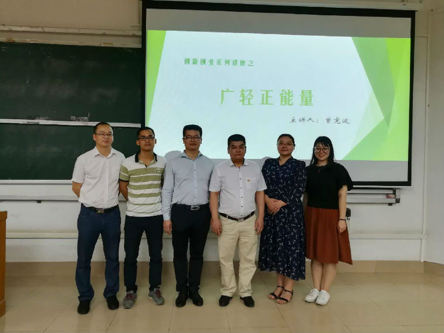 2018年5月8日下午,我院特邀全国五一劳动奖章获得者——机电技术学院机电一体化2005届毕业生曾宪波校友回校讲学。此次讲座主题是广轻正能量,意在为同学们营造良好的专业学习氛围,培养同学们艰苦奋斗、勇于突破的工匠精神,使同学们了解一名机电学子的奋斗历程。出席此次讲座的有我院党总支书记林海雄老师、副院长李湘伟老师和赵荣老师、辅导员蔡崇华老师,以及我院16、17级学生代表。