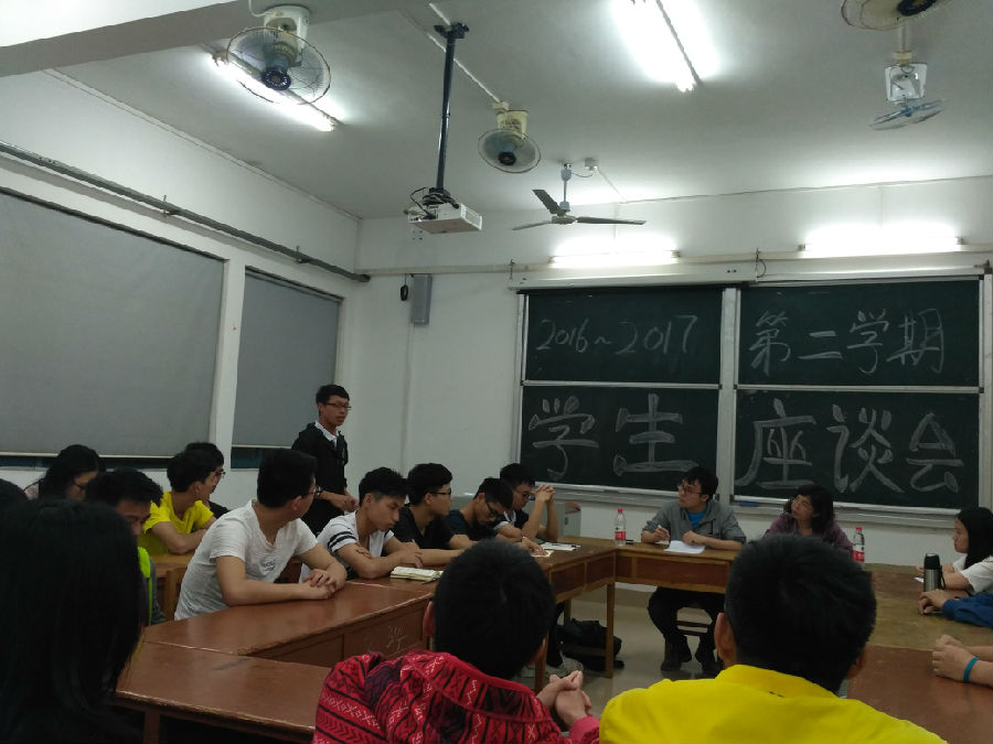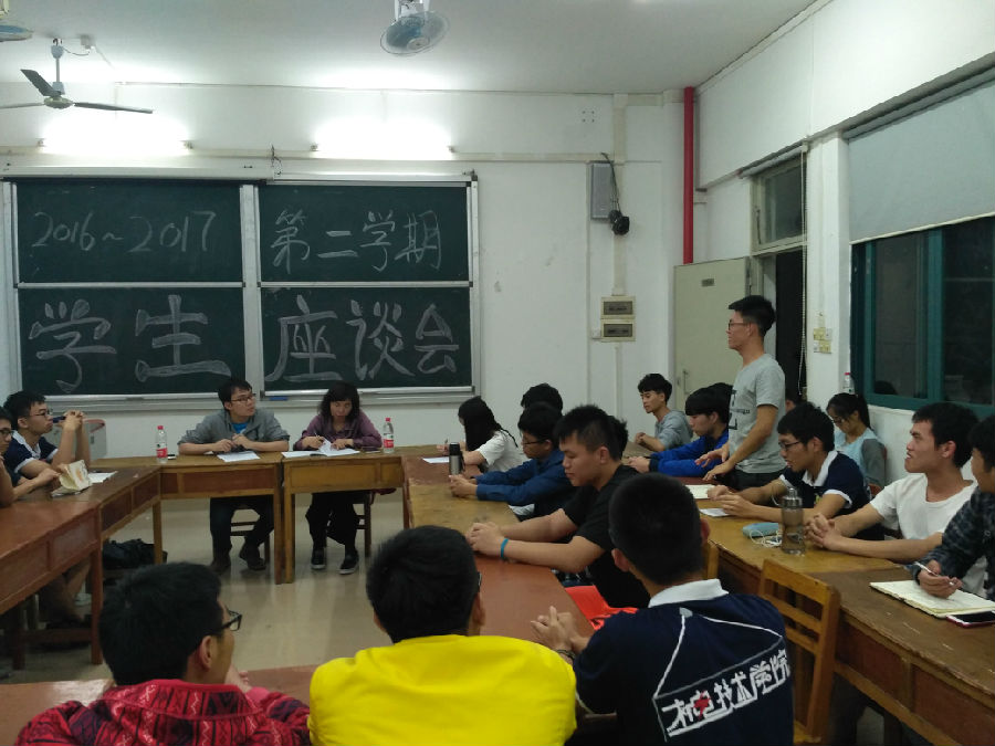 2017年4月27日,我院在教学楼1316召开了每学期一次的学生座谈会。本次座谈会由蔡菊副院长与教务员林思克老师主持,各班学委、班干、以及班级同学参加了本次座谈。2015、2016级分批进行座谈。