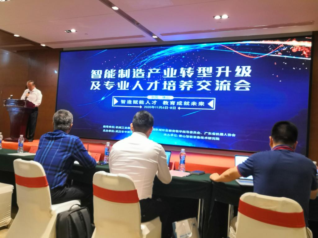 11月6日至8日,在机械工业教育发展中心的指导下,武汉华中数控股份有限公司联合佛山智能装备技术研究所在佛山召开了“智能制造产业转型升级及专业人才培养交流会”。全国机械职业教育教学指导委员会秘书长、机械工业教育发展中心副主任郑丽梅、机械工业教育发展中心主任助理、北京赛育达科教有限责任公司总经理王志强、广东省机器人协会执行会长任玉桐、电子科技大学工业互联网彭小刚等专家出席会议,来自全国100余所智能制造领域高等院校、职业院校的相关专家和专业带头人参加了交流会,我校机电技术学院院长张友能应邀出席。