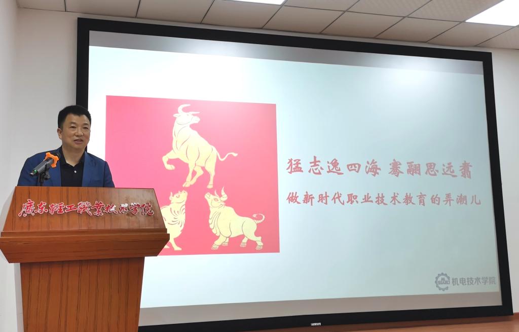 会上,张友能作了题为《猛志逸四海 骞翮思远翥——做新时代职业技术教育的弄潮儿》的报告,一是强调了单位对于个人的重要性,希望大家珍惜单位,爱岗敬业,脚踏实地,主动作为;二是结合新时代职业教育的大背景及相关文件精神,围绕“新经济、新管理、高质量”,奋力增强机电技术学院职业技术教育的适应性,将机电技术学院2021年的工作要点总结为28项,对新学期的工作进行了全面、细致的部署;三是希望全体教职工对照工作要点,大力弘扬“三牛”精神,做服务职教的“老黄牛、孺子牛、拓荒牛”,锚定新目标、奋战新征程,主动作为、奋发有为、担当善为。最后他引用陶渊明诗人的诗句“猛志逸四海,骞翮思远翥”,勉励全体教师勇做新时代职业技术教育的弄潮儿。