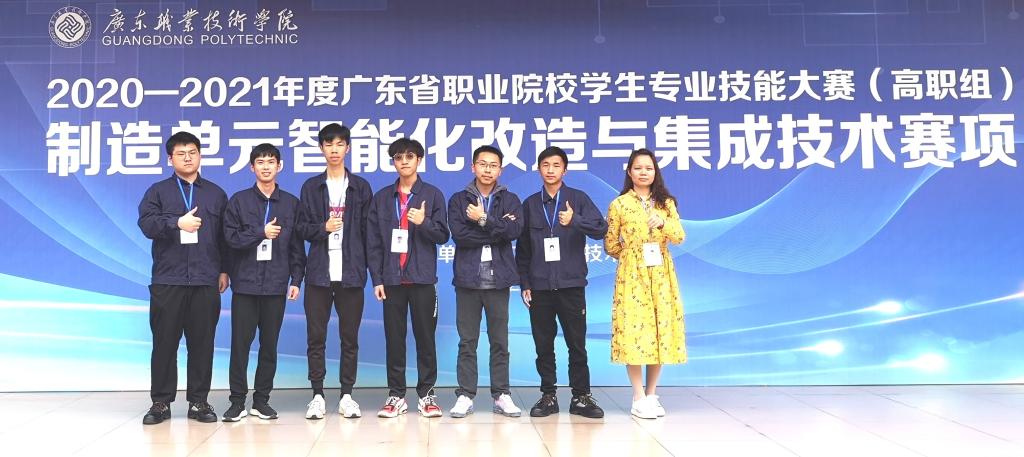 2021年3月27-29日,由广东省教育厅主办的“2020-2021年度广东省职业院校学生专业技能大赛(高职组)制造单元智能化改造与集成技术赛项”在佛山举行,全省28所高职院校52支队伍展开激烈角逐。我校机电技术学院一队机器人191班何煜、吴松炎、机器人192班黄海威,二队机器人191班江云天、机器人192班董淇青、温端敬克服种种困难,在没有比赛设备的情况下,积极参赛,两队最终皆获得大赛三等奖。