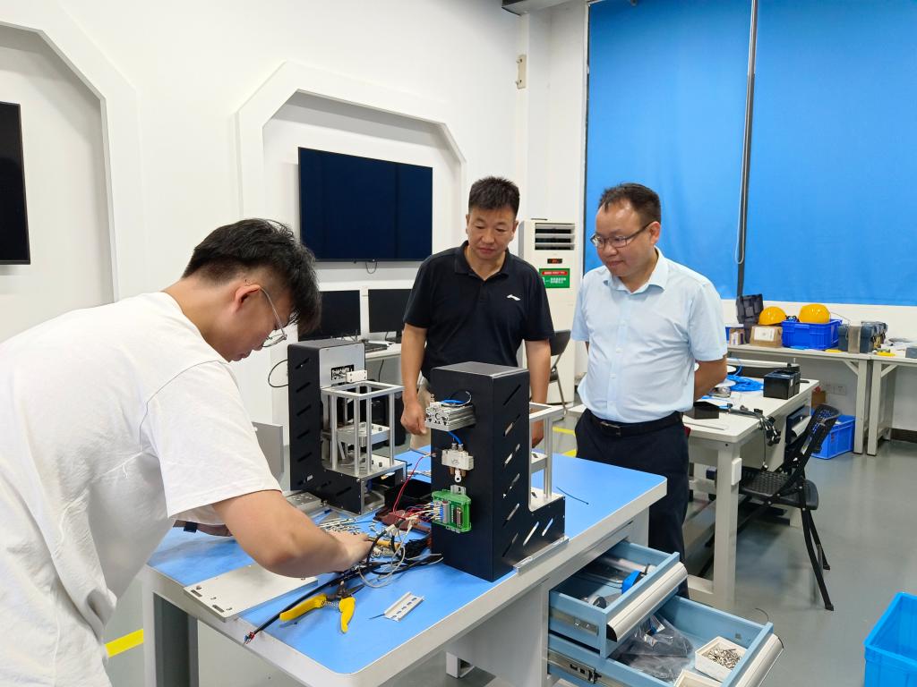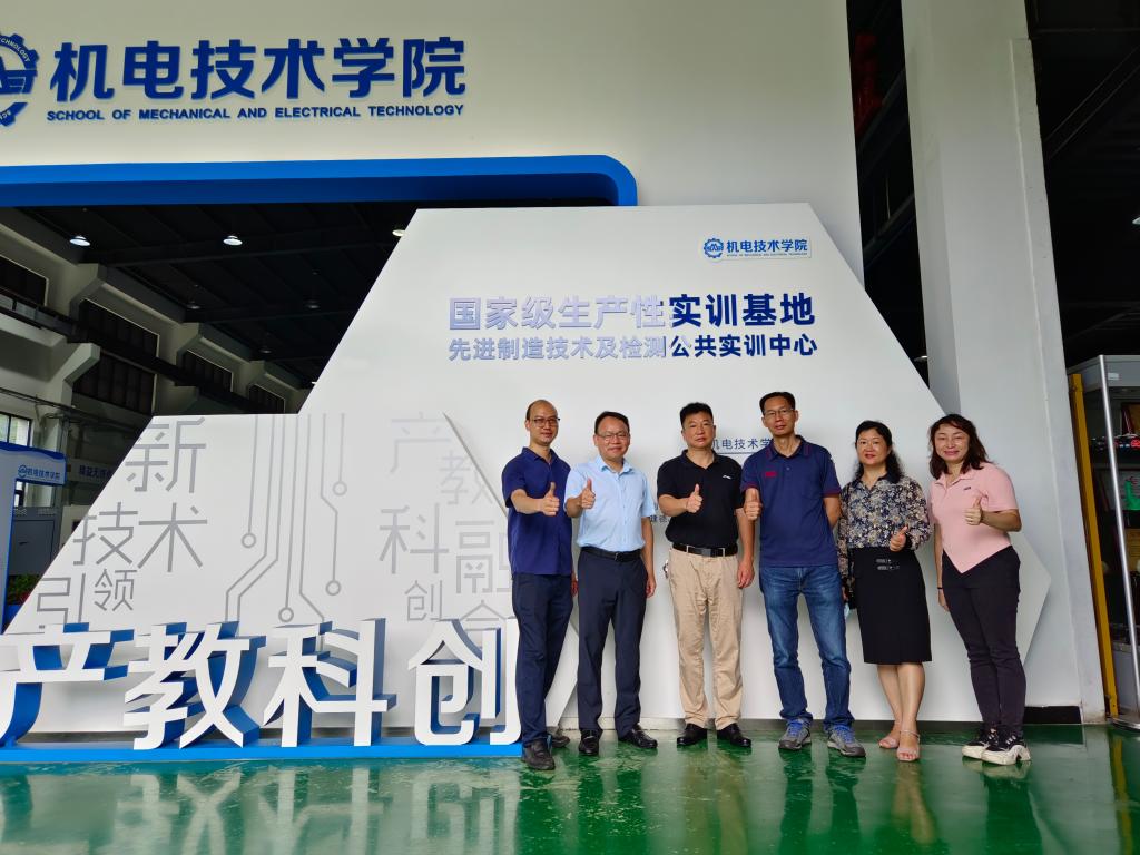 为推动近期我院到广东东亚电器有限公司交流达成的初步合作共识落地落实,8月20日上午,广东东亚电器有限公司副厂长陈妃聪一行回访我院,学院院长张友能带领回访客人先后参观了我院先进制造实训基地、工业机器人实训基地、智能装备技术实训基地。陈妃聪对我院先进的实训设备、一流的实训环境以及六个文化建设等表示肯定和赞扬。