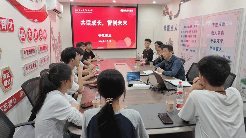 11月5日晚,学院党委在行政楼2200党建活动室举办了以“共话成长,智创未来”为主题的书记茶座,本次茶座由学院党委书记余亮彬主持,辅导员蔡崇华和2024级机械电子工程技术本科班12名同学参加,一同畅谈生活感悟与生涯规划,凝聚共识,共展未来美好画卷。