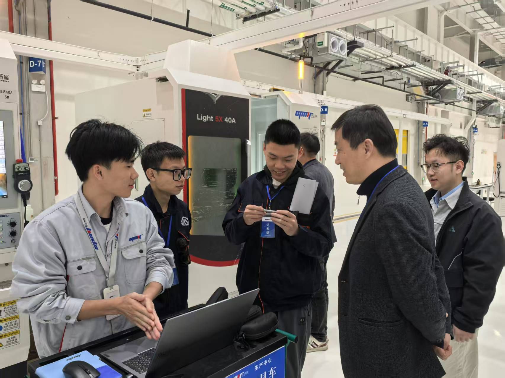 为落实好“双场景、双文化、双项目、双证书”人才培养模式,进一步加强校企合作,1月11日,机电技术学院党委书记余亮彬带队,教研室副主任杨绍忠、党政办公室主任张晓丹一行走访了佛山华数机器人有限公司、广东原点智能技术有限公司和佛山市常捷精密金属零部件制造基地,看望了正在企业课堂学习的学生,并与企业方领导和指导教师,以及学生们进行了深入交流。