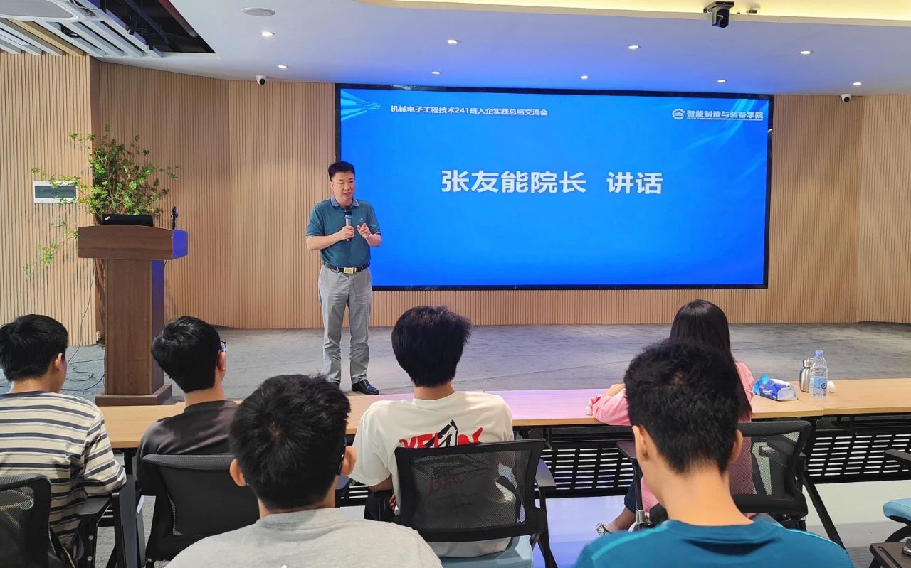 3 月 25 日,智能制造学院举办机械电子工程技术专业入企实践总结交流会,全面梳理此前为期一周的企业实践学习经历。学院院长张友能、机械电子工程技术专业教研室副主任杨绍忠、党政办主任张晓丹出席会议,辅导员蔡崇华主持,专业全体学生参与。