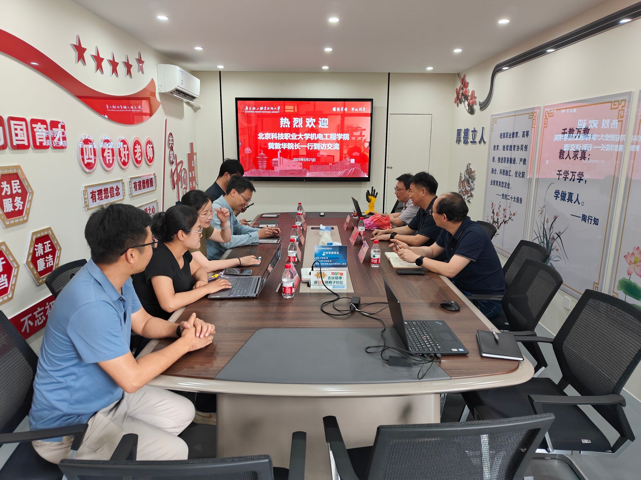 张友能对北京职业技术大学机电工程学院一行的到访表示热烈欢迎。他简要介绍了学院的基本情况及职业本科专业建设、人才培养定位、人才培养模式、育人品牌和成效。