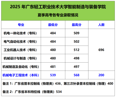 近日,广东省2025年夏季高考本科和专科批次投档完成,广东轻工职业技术大学智能制造与装备学院在此次招生中表现亮眼,计划招生896人一次性满额投档,本科、专科录取分数均再创新高。