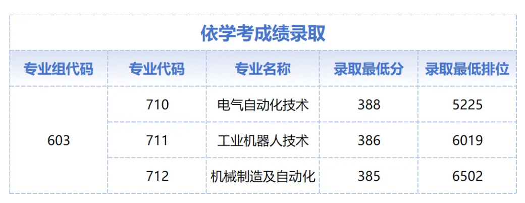 3+证书三个专业共招生30人,其中电气自动化技术专业录取分数线为381分,同样位列全校第一。