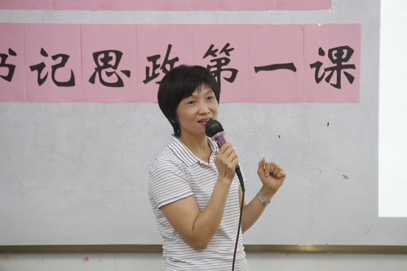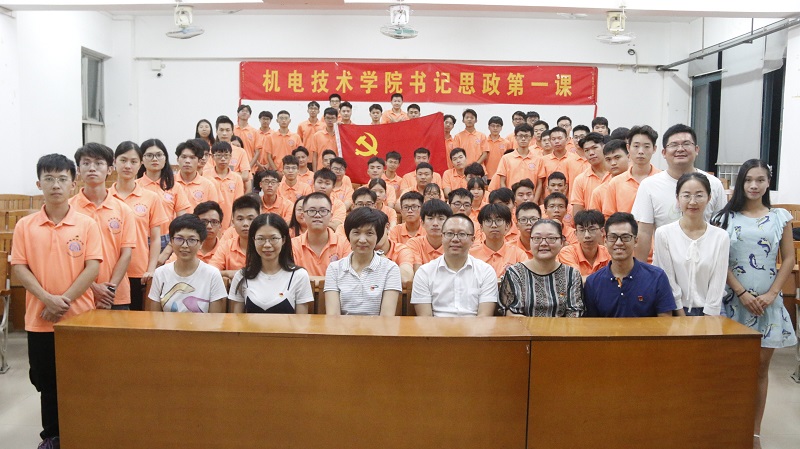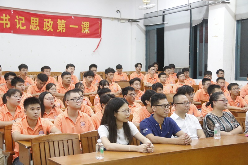 10月16日晚,机电技术学院党总支书记宋霞在南海校区教学楼1208为90名学生干部上了题为“新时代中国共产党人的初心和使命”的思政第一课,党总支副书记赵荣、副院长苑振国等出席。