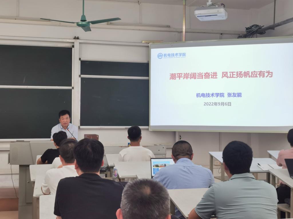 9月6日下午,机电技术学院在南海校区北区教学楼1227召开新学期全体教职工大会。机电技术学院党总支书记宋霞、院长张友能出席并讲话,机电技术学院全体教职工参加会议。