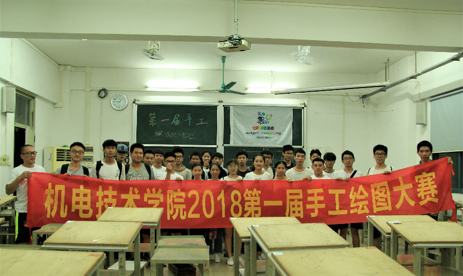 机电技术学院第一届手工绘图大赛于2018年6月26日晚上7点到9点在我校南海校区教学楼1227和1229成功举行。本届手工绘图大赛由机电技术学院主办,智能制造协会承办;由我院模具教研室的王子媛老师、田先亮老师和梁海澄老师出题,我院刚成立的智能制造协会会长甄华劲、副会长姚文静、秘书部部长李康福、宣传部部长李雅仪和技术部曾泳等八名协会创始人组织策划并监考。