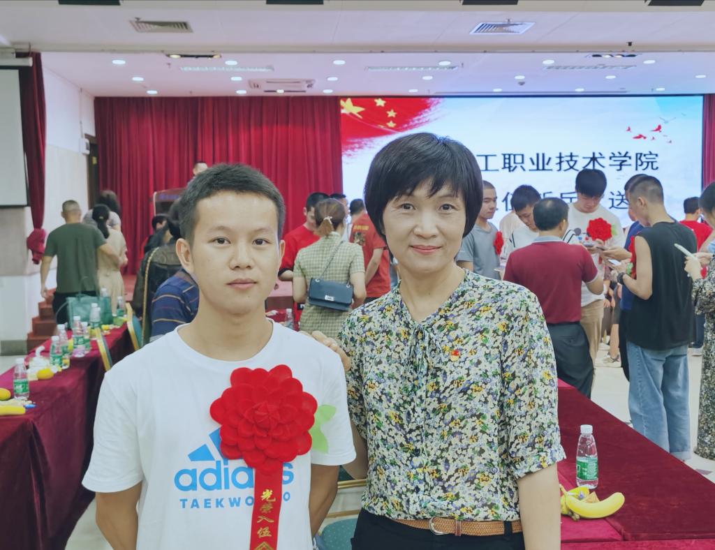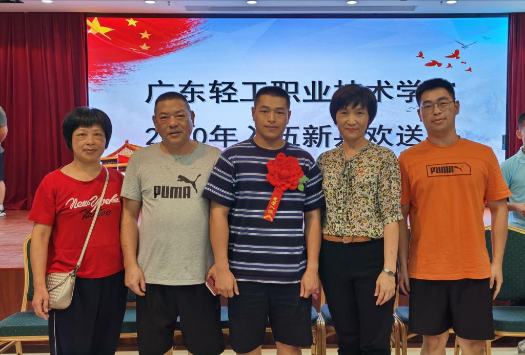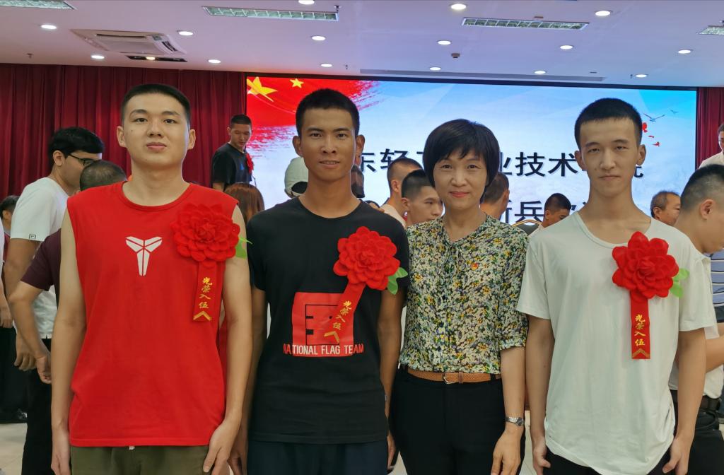 欢送会现场,父母和老师共同为新兵们送上美好祝愿,希望他们不负青春与梦想,在部队争创佳绩,将甘愿奉献的精神牢牢扎根,从一名普通青年迅速成长为合格的中国军人。学子们胸佩红花,意气风发,肩负着亲人、学校的期望,即将开启为期2年的军旅生涯。据悉,除了这17名从学校入伍的机电学子以外,还有同学已在家乡递交入伍申请。他们,既是广轻人,也是中国兵!他们将不负期望,用青春为祖国谱写嘹亮的强军战歌!
