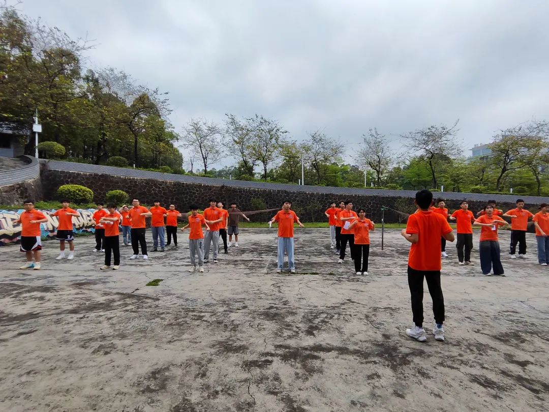 活动正式开始前,工作人员带领参赛人员进行赛前热身。