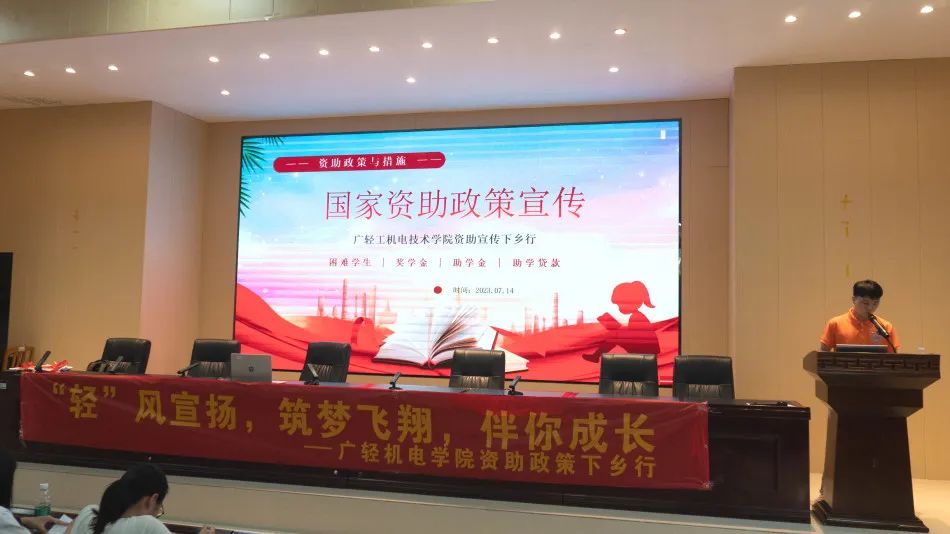 2023年7月14日上午,资助宣传实践团来到了新丰县第一中学,在学术报告厅举办了国家资助和助学贷款政策宣讲会。