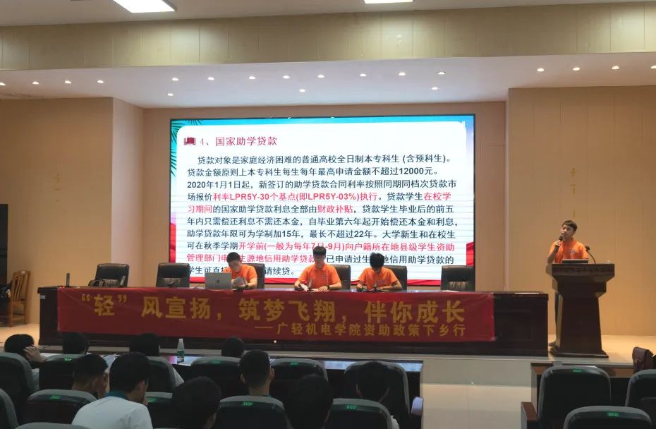 根据前期调查问卷情况,胡文康重点向大家讲解了国家助学贷款、绿色通道、国家奖助学金、广东省家庭经济困难大学新生资助等一系列资助政策的内容及申请流程,解决了家庭困难学生的后顾之忧,帮助了更多学生树立继续求学成才的信心,使资助政策惠及到更多有需要的人。