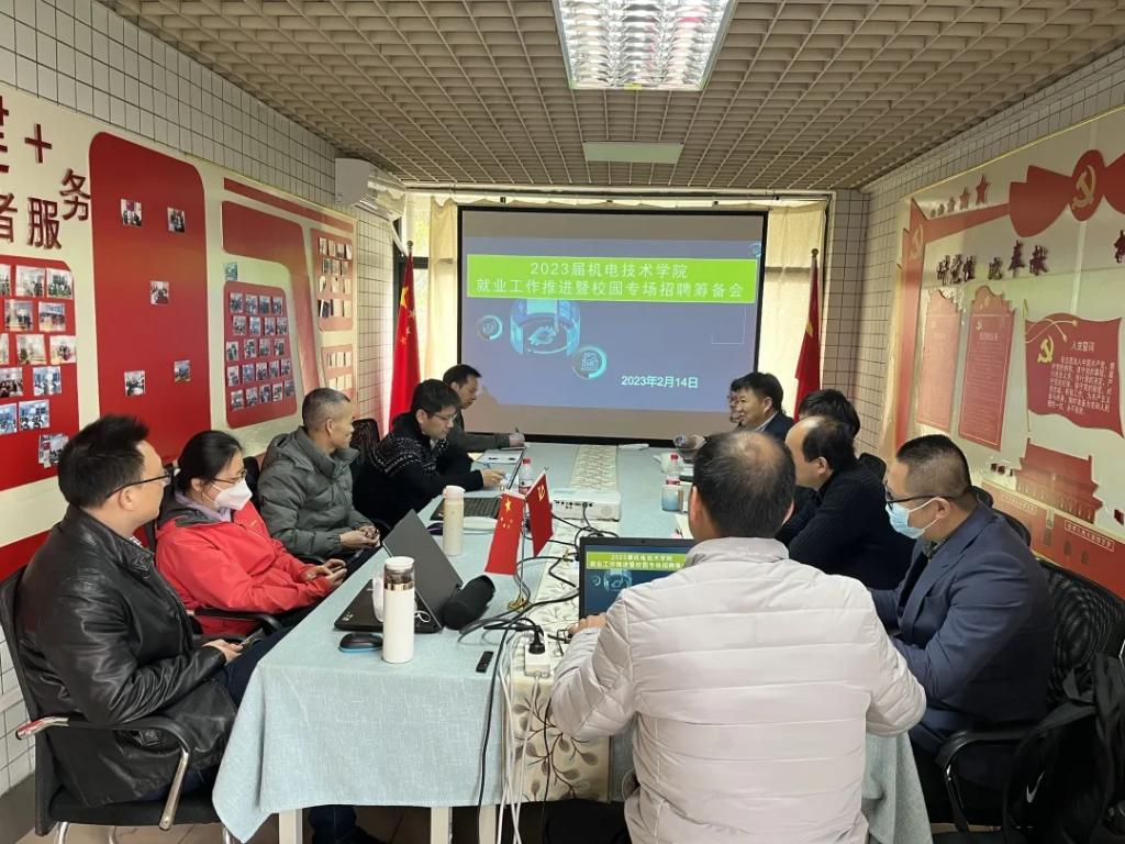 为贯彻落实党中央、国务院“稳就业”“保就业”决策部署,促进毕业生更加充分和高质量就业,2月14日上午,机电技术学院在行政楼2200召开就业工作推进暨校园专场招聘筹备会,对机电技术学院校园专场招聘会工作进行提前部署。机电技术学院党总支书记宋霞、院长张友能、党总支副书记赵荣、副院长苑振国、毛诗柱及各专业教研室主任参加了此次会议。