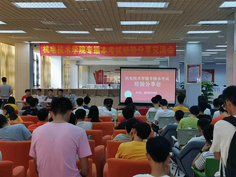 2019年11月3日14:00时,机电技术学院在南海校区图书馆a301举行专插本考试经验分享会,本次分享会由柯明老师组织主持,邀请到专插本成功毕业生返校为同学们进行考试经验分享。