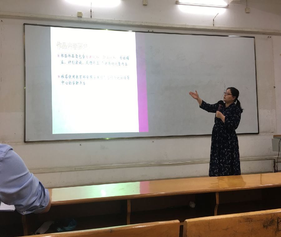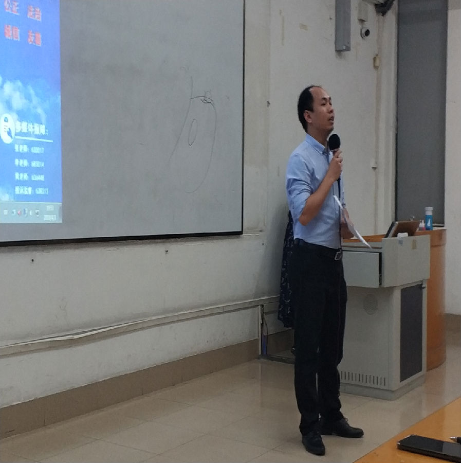 赵荣老师讲完话有请柯明老师进一步讲解关于我院大学生职业生涯规划比赛通知的内容,课室内,柯明老师耐心讲解我们不懂的问题,并希望我们能够做出更好的作品,也希望我们可以积极参与,为院争光,为自己争光。