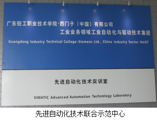2010年,自动化专业与西门子工业自动化有限公司合作,联合建成了“先进自动化技术联合示范实训中心”,是华南地区首个高职院校与西门子公司合作建成的联合示范中心,可承接佛山地区西门子自动化领域的培训工作。