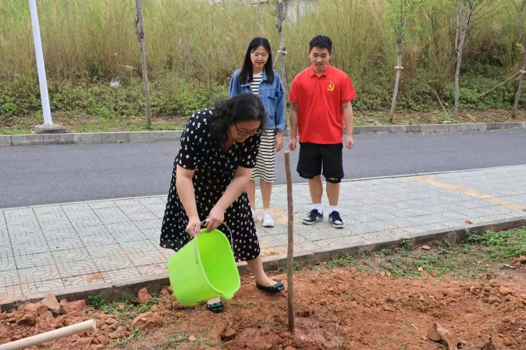 草长莺飞季,植绿正当时。时值第45个植树节,为贯彻落实党的二十大报告中的推动绿色发展,促进人与自然和谐共生理念,提升大学生保护环境的意识和增强大学生劳动实践的能力,3月12日下午,机电技术学院二级党校、院团委组织党员、积极分子、学生干部和部分学生代表开展以“党建引领聚合力,植绿护绿我先行”的植树节主题党日活动。