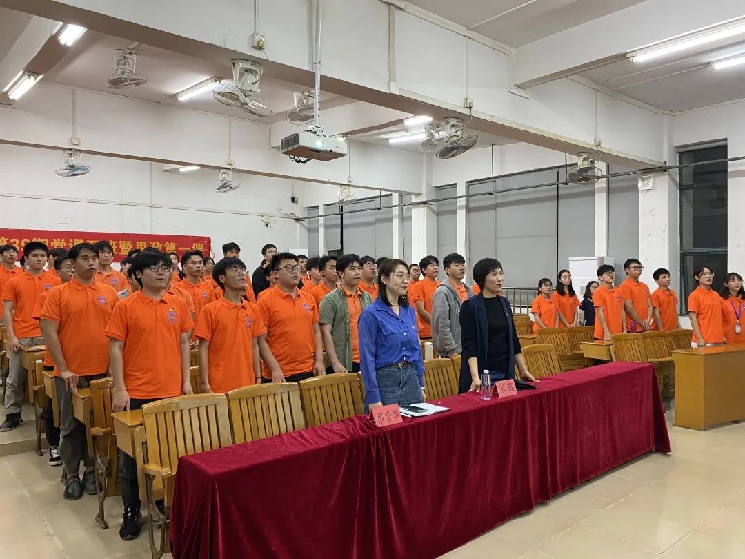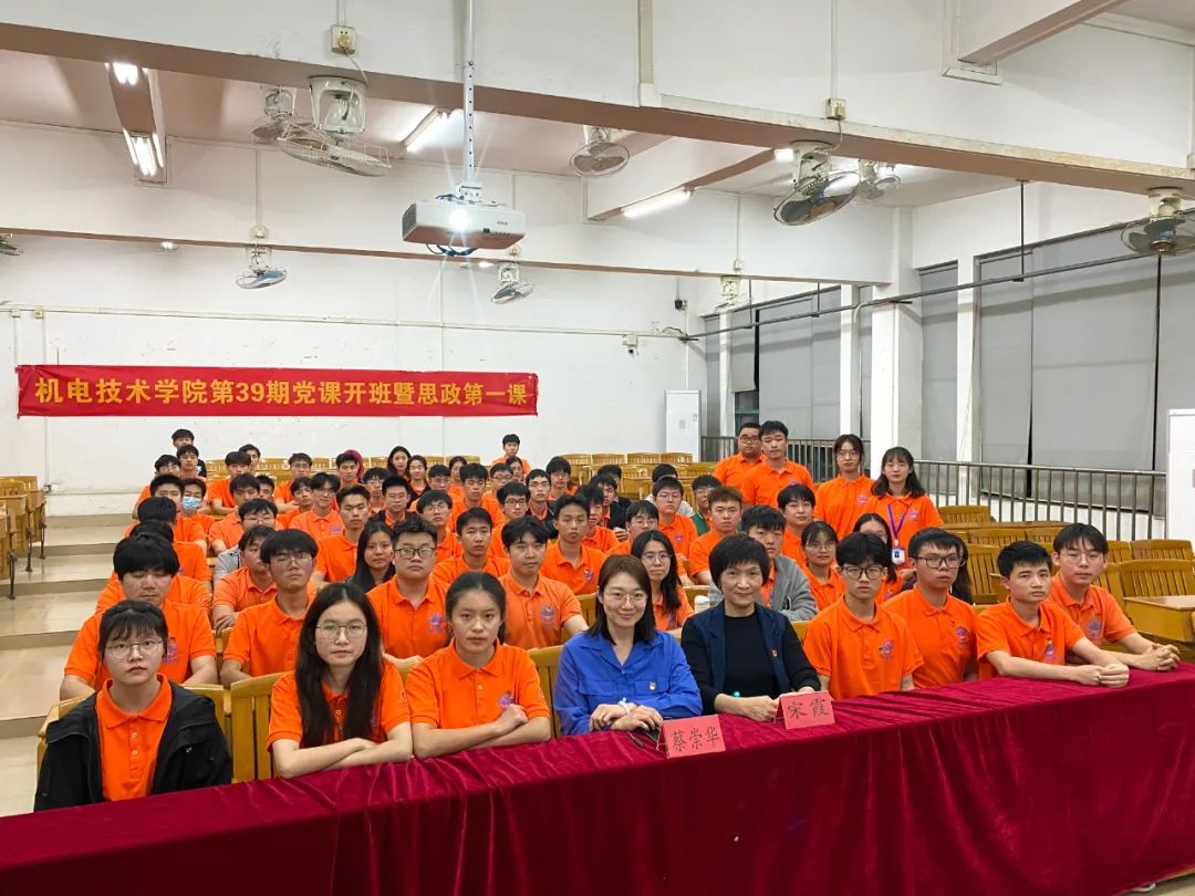 为切实保障机电技术学院党建工作持续高效发展,进一步推动入党积极分子教育管理工作的有序开展,提高入党积极分子的党性修养,深入学习党的二十大精神,宣传贯彻党的教育方针,教育引导入党积极分子大力发扬红色传统、矢志不渝为中华民族伟大复兴而奋斗,2023年3月7日19:30,学院党总支在南海北区教学楼2210教室举行第39期入党积极分子培训开班仪式暨思政第一课。党总支书记宋霞、学生第二党支部书记蔡崇华出席了本次开班仪式。