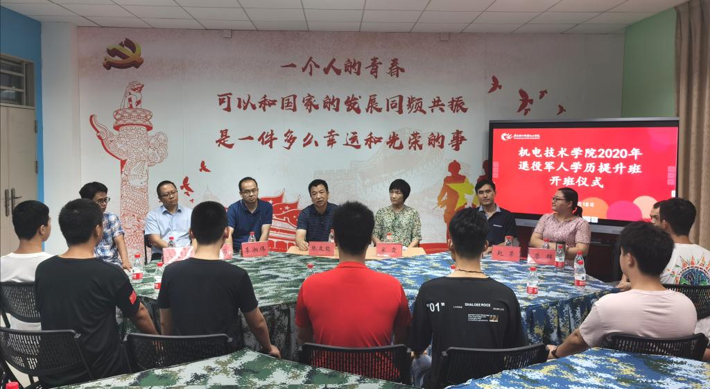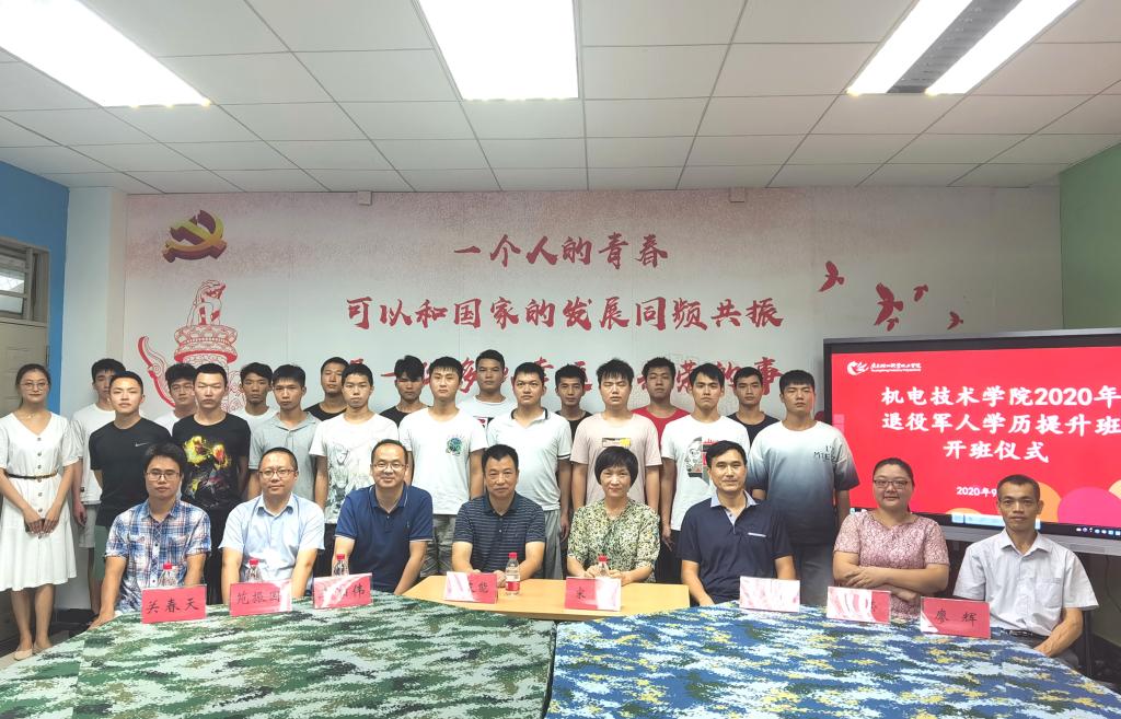 9月18日,机电技术学院退役军人学历提升班开班仪式顺利举行,我院领导班子及相关老师、机电20C班全体学生共同出席,并邀请保卫处黄卓晔副处长参加仪式。