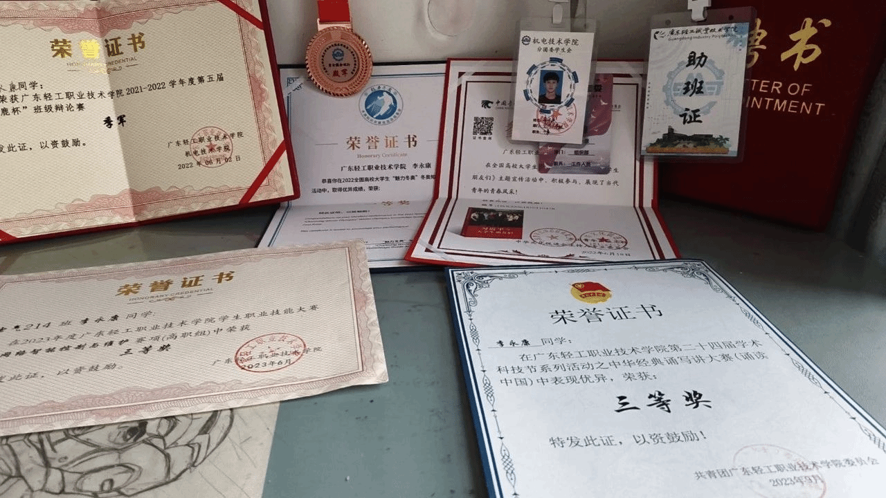 在学校里,李永康一直保持着优异的成绩和出色的表现。他担任班级团支书,带领班级获得了“优秀团支部”等荣誉称号。他好学不倦,兴趣广泛,在校积极参加专业竞赛和各种课外活动,屡获佳绩,展现出他的多才多艺。