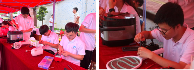 活动中,该校机电技术学院的“机电君”实践团队结合专业特长开展小家电义务免费维修,帮助居民维修故障电器,普及用电安全常识,为社区居民提供惠民暖心服务,广泛开展文化、科技、卫生“三下乡”实践,为“双百行动”助力添彩。